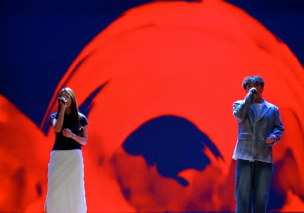 演出以《逆光》开场,激昂的节奏与充满力量的演唱瞬间点燃现场,展现出追光者在逆境中奋勇前行的决心,鼓舞着每一位观众勇敢直面生活挑战;《苏州河》舒缓悠扬的旋律如潺潺流水般流淌,温柔的嗓音诉说着河畔故事,将观众带入静谧而浪漫的氛围,勾起对美好过往的回忆;英文歌曲《Someone Like You》深情款款,演唱者极具感染力的嗓音诠释出爱情的遗憾与释怀,引发情感共鸣;民谣《阿嬷》以质朴的歌词搭配温暖的旋律,勾勒出记忆中阿嬷的慈祥模样,充满浓郁的乡愁,唤起大家对亲人的思念之情;歌曲《命运》磅礴的气势和激昂的旋律如命运的叩击,唱出与命运顽强抗争的不屈精神;轻快俏皮的《莫怕莫怕》以灵动的节奏和活泼的演绎,传递出乐观积极的生活态度,为现场带来阵阵欢笑;《梦的光点》旋律清新明快,歌声中饱含对梦想的憧憬与追求,点燃了少年心中的希望之火;合唱《世界赠予我的》将整场演出推向了高潮,和谐的和声与真挚的情感,表达了对世界的感恩与热爱,让在场的每一位观众感受到了音乐的魅力与温暖。