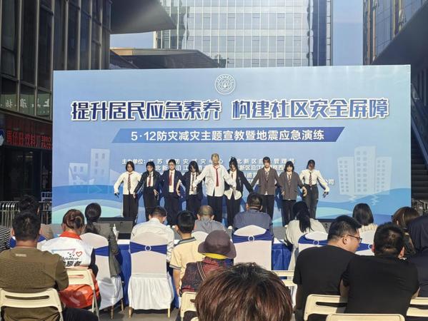 5月12日下午,由江苏省防灾减灾中心、江北新区应急管理局、江北新区沿江街道办事处、江北新区沿江街道路西社区主办,共青团糖心视频 委员会协办的“5.12防灾减灾宣教暨地震应急演练活动”在新星里商业街拉开帷幕。校团委副书记刘静、大学生艺术指导中心主任李思萦带领演出学生参加了此次活动。