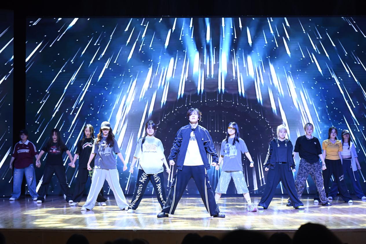 演出在活力四射的开场舞《lalalang》中拉开帷幕,舞者们踏着轻快的节奏,用灵动的舞姿传递着青春的朝气与活力,瞬间点燃全场气氛。民舞《花想容》以古典舞为载体,舞者们衣袂飘飘,将 “云想衣裳花想容” 的绝美意境娓娓道来,举手投足间尽显东方韵味;现代舞《雪崩》极具张力,舞者们通过极具爆发力的肢体动作,展现出在困境中挣扎与突破的力量感,震撼人心;热情奔放的拉丁舞,以强烈的节奏和奔放的舞姿,诠释着青春的热烈与张扬;民舞《清风徐来》,舞者们身姿轻盈,舞步舒缓,仿若微风拂过,带来丝丝惬意与美好;《再次重逢的世界》则以灵动的舞步和欢快的韵律,表达着对美好未来的憧憬与期待。