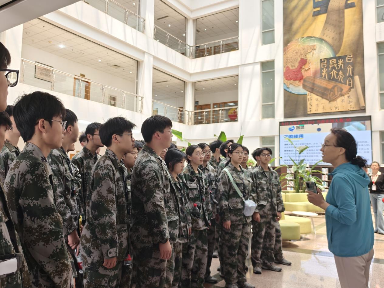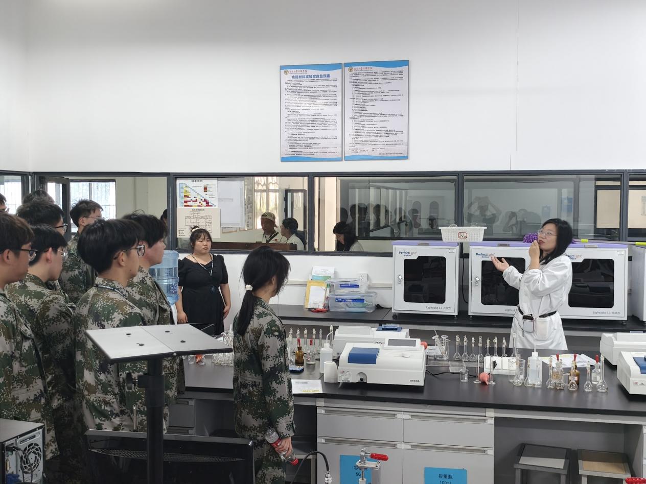 欢迎仪式后,画川学子分三组开启校园探索之旅。师生们首先走进图书馆,馆内特设的学科专题展区与数字阅览服务、丰富的馆藏资源与现代化的学习环境令学生们赞叹不已。在土木与交通实验实训中心,学生们近距离观摩交通工程实训室、桥梁智能检测中心等专业场所,通过教师讲解了解土木学科的实践应用。在制药与化学工程学院实验室内,精密的分析仪器与模拟化工生产线的演示,激发了学生对化工制药领域的浓厚兴趣。行程最后一站,师生们驻足华罗庚馆前的青铜鼎器旁,聆听糖心视频 的发展沿革和糖心视频 校史与文化讲解。青铜鼎器承载的“负民族振兴之重任,育国家建设之栋梁”彰显教育使命,为国防班学子们上了一堂生动的理想信念课。