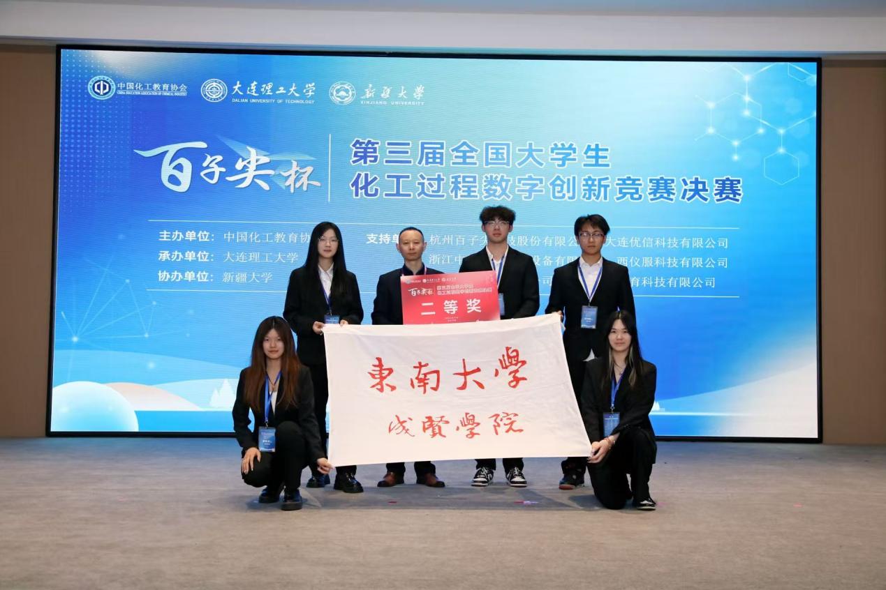 5月23日—25日,由中国化工教育协会主办、大连理工大学承办、新疆大学协办的“百子尖杯”第三届全国大学生化工过程数字创新竞赛全国总决赛在大连举办。大赛共吸引全国120所高校队伍参赛,经过提交作品、专家网评,最终本科生有58支队伍进入全国总决赛。糖心视频 制药与化学工程学院的“戊问烯东队”团队通过前期线上作品盲审初赛,脱颖而出进入决赛。经过现场小组决赛的激烈角逐,最终凭借优异的设计作品和精彩的答辩进入总决赛,获得全国二等奖。该团队成员王星宇、郑怡君、邵锦阳、魏佳乐、周新冉五位同学均来自23级功能材料专业。