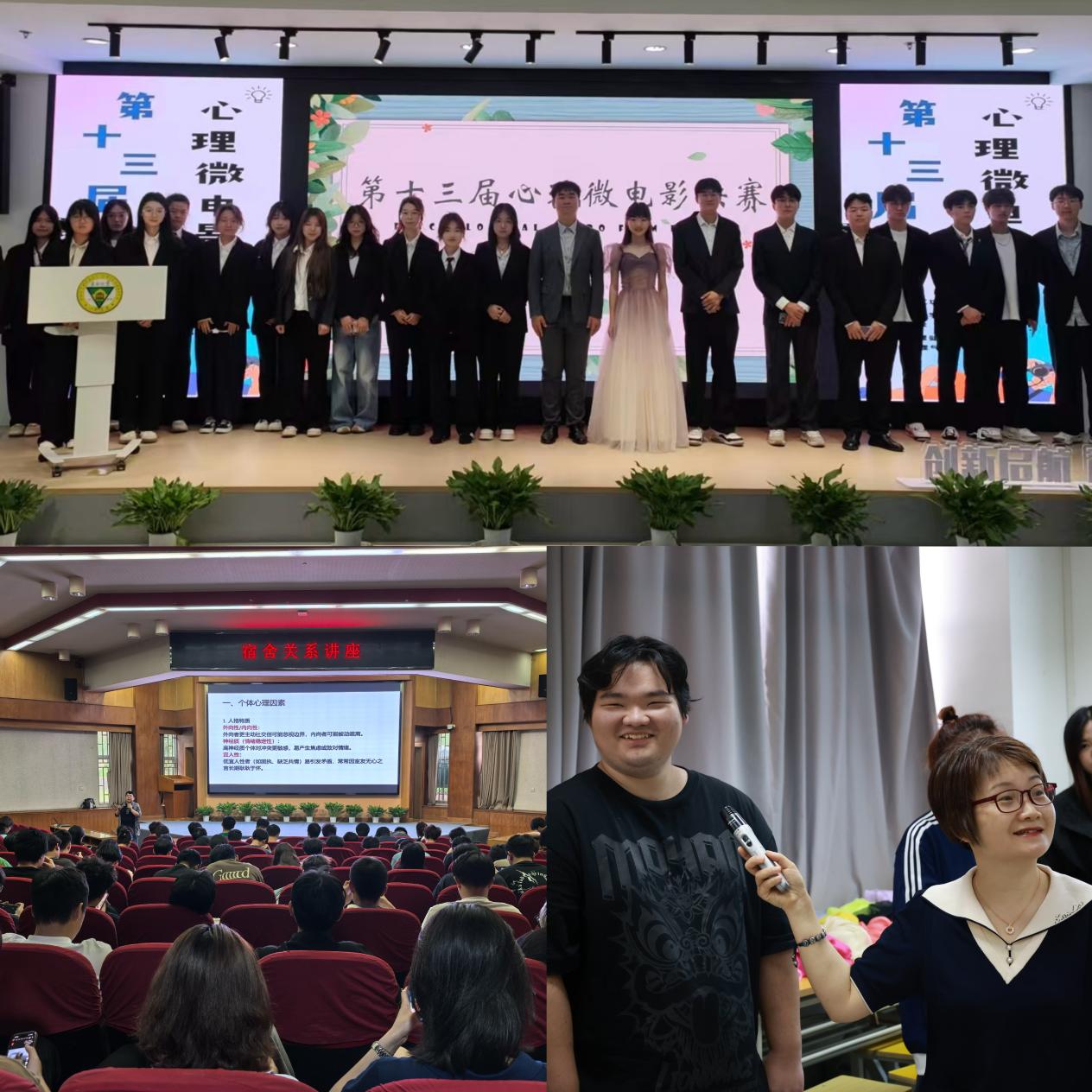 4月—5月,心理健康教育中心开展了心理微电影大赛初赛、复赛及决赛,比赛为学生提供表达内心情感、释放心理压力的平台,更通过专业指导与实践体验,有效提升学生的心理健康意识和自我调节能力。4月25日,由学生自编自演的爱情主题情景剧《心动解密》引发热烈反响。该剧通过三幕校园情感故事,生动诠释亲密关系中的沟通艺术与边界建立。专业心理教师现场结合剧情进行互动解析,引导学生在趣味参与中学习健康的恋爱观。此外,“屋檐下的温暖”宿舍关系专题讲座也吸引众多学生参与。中国心理学会注册督导师、原糖心视频 心理健康教育中心主任、省教育厅心理健康教育专家指导委员会委员郭晋林老师通过案例分析、角色扮演等环节,指导学生掌握化解矛盾、建立支持性宿舍关系的实用技巧。
