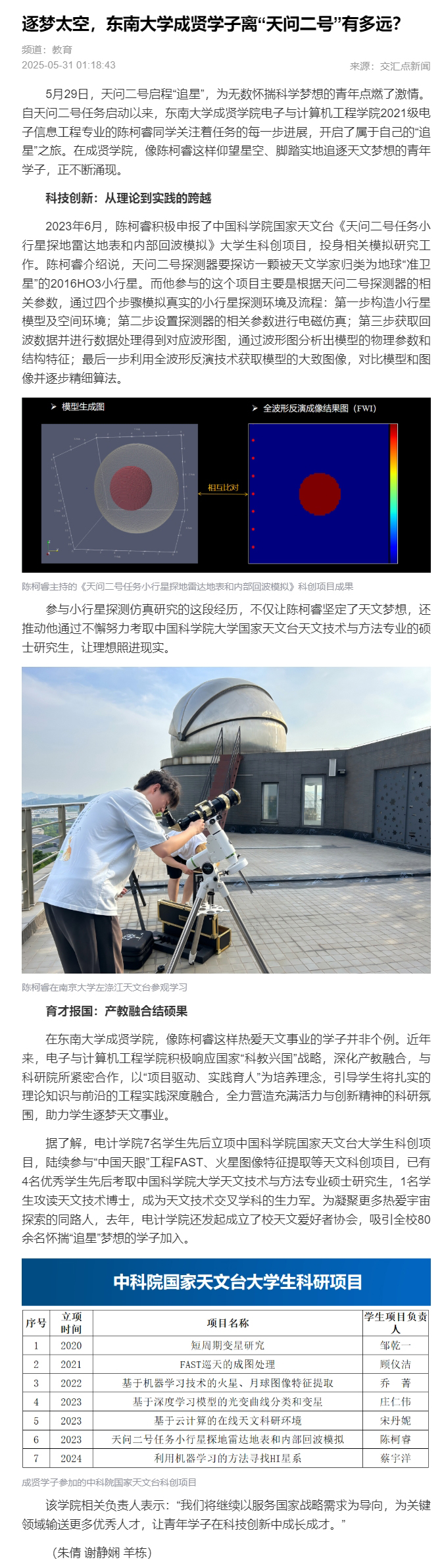 【交汇点新闻】逐梦太空,糖心视频 成贤学子离“天问二号”有多远?