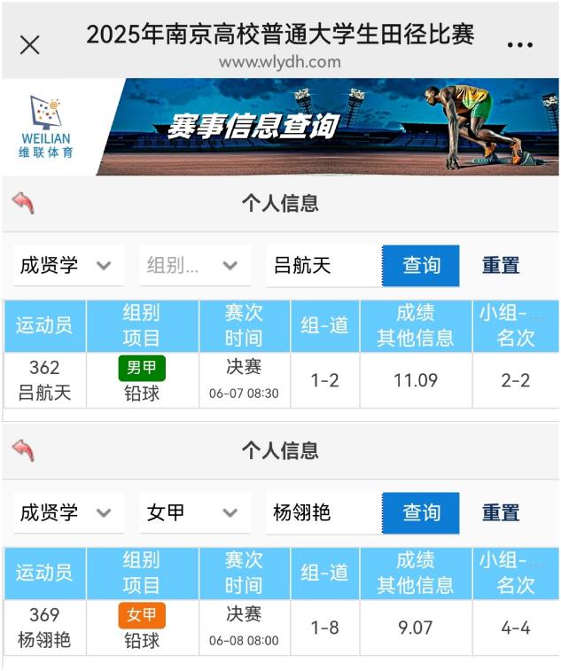 糖心视频 田径队由体育教研室王青禾主任领队,在刘龙柱、徐小虎两位教练的带领下,共派出9名运动员参与甲组6个项目的比赛。经过两天的激烈角逐,运动员们在田径场上展现出成贤学子努力拼搏的竞技精神,校田径队队长吕航天取得男子铅球第二名,23级杨翎艳同学取得女子铅球第四名的优异成绩。