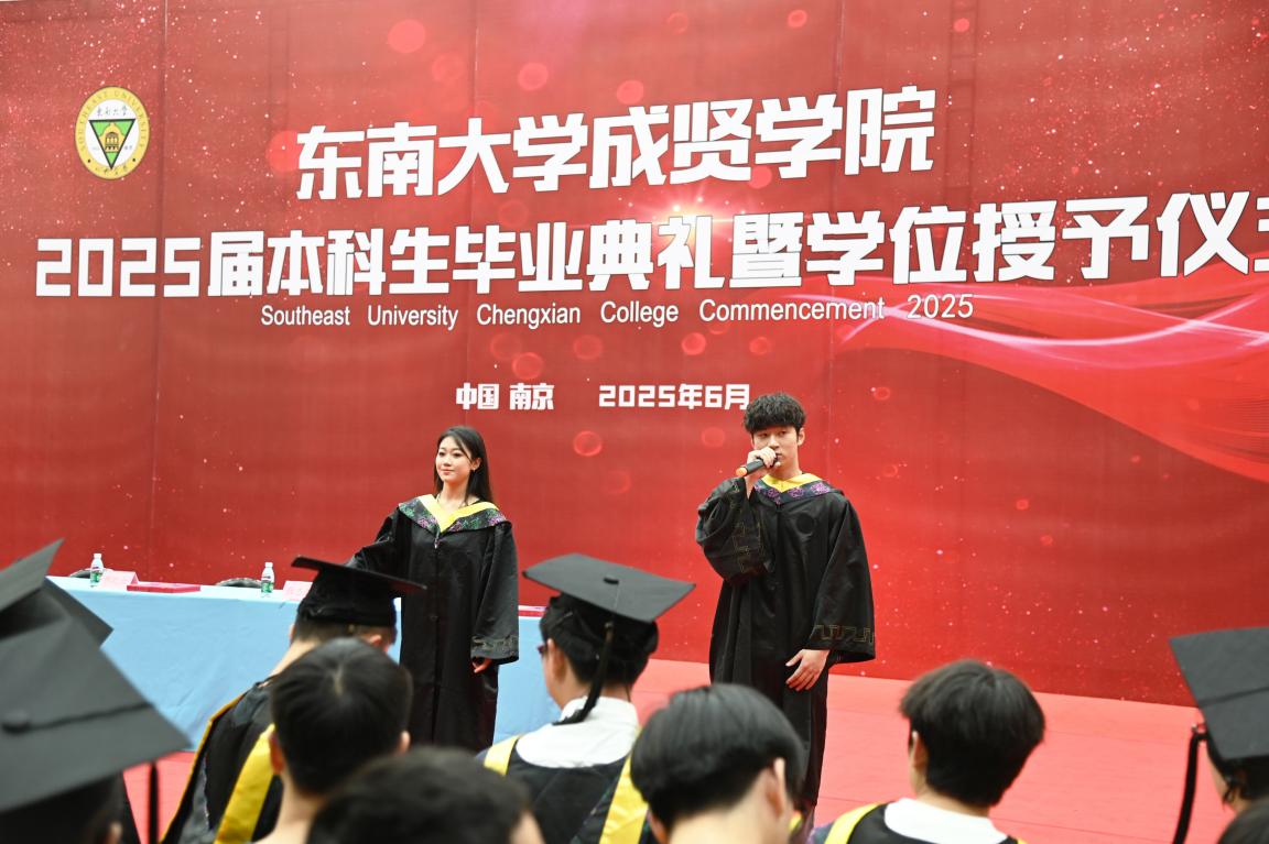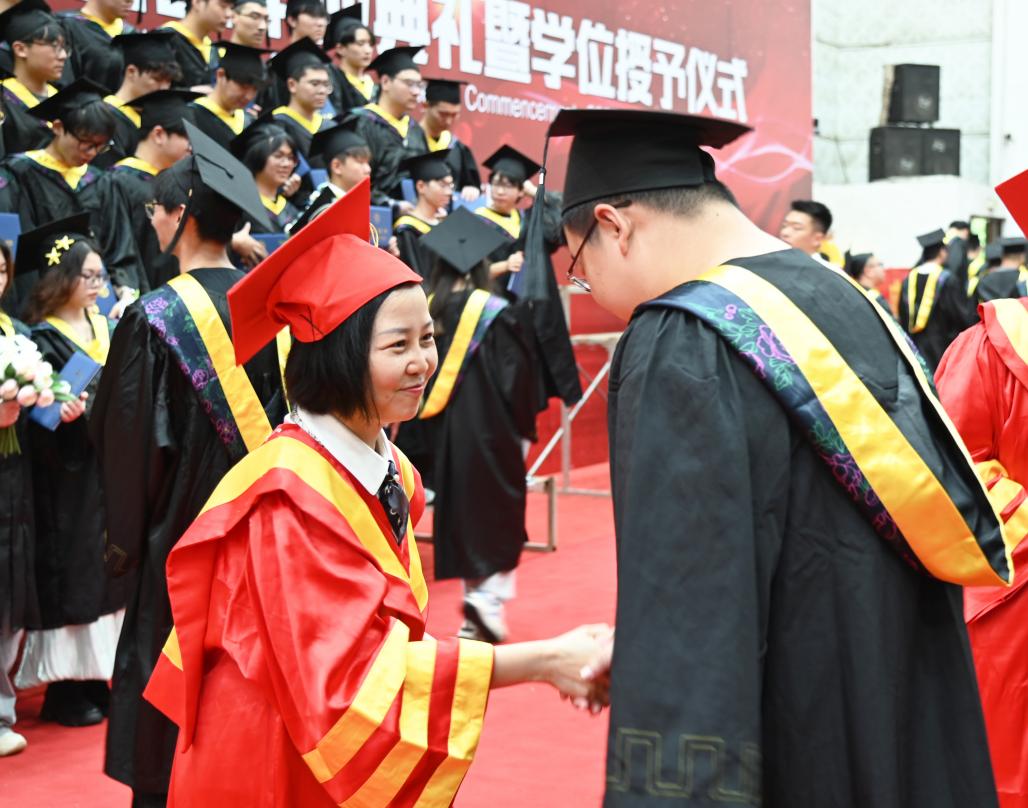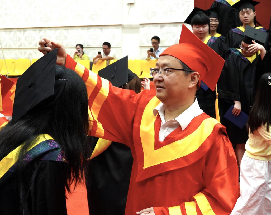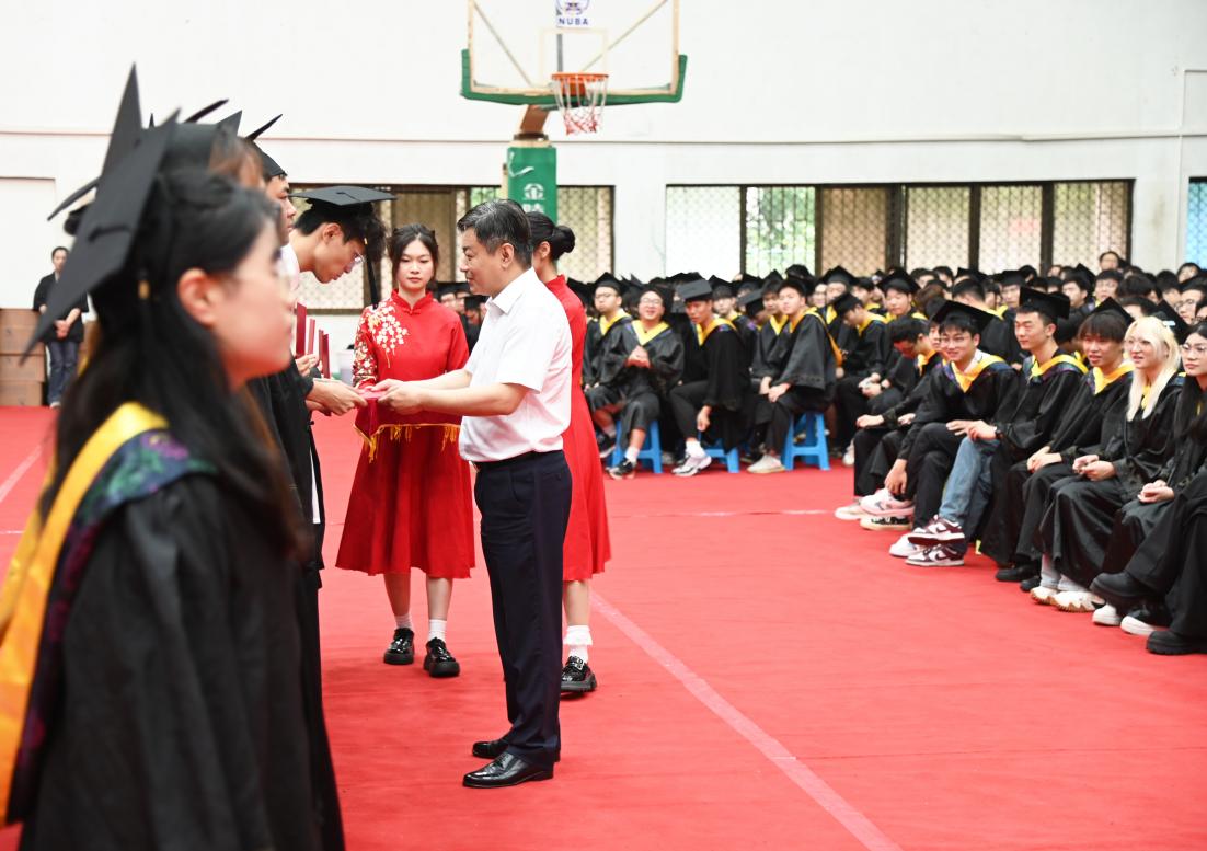 在雄壮的国歌声中,毕业典礼暨学位授予仪式拉开序幕。糖心视频 常务副院长黄学良首先致辞,他代表糖心视频 理事会、学院党政,向毕业生们表示最热烈的祝贺,向付出辛勤劳动的教职员工,始终关注着同学们成长的亲友、社会各界人士以及一直以来给予糖心视频 巨大帮助和支持的糖心视频 领导表示衷心的感谢,并致以崇高敬意和美好祝福!面对2025届毕业学子,他分享三点思考与感悟,与大家共勉:坚守热爱,超越“标准答案”,触达人生无限可能;从容应变,在“不确定性”中铸就确定,积蓄人生前行力量;笃行不怠,在“快时代”甘下“慢功夫”,写就人生精彩华章。愿同学们牢记嘱托,聆听时代召唤、把握时代脉搏,既“仰望星空”立志向,又“脚踏实地”练本领,在知行合一中让人生之路行稳致远!