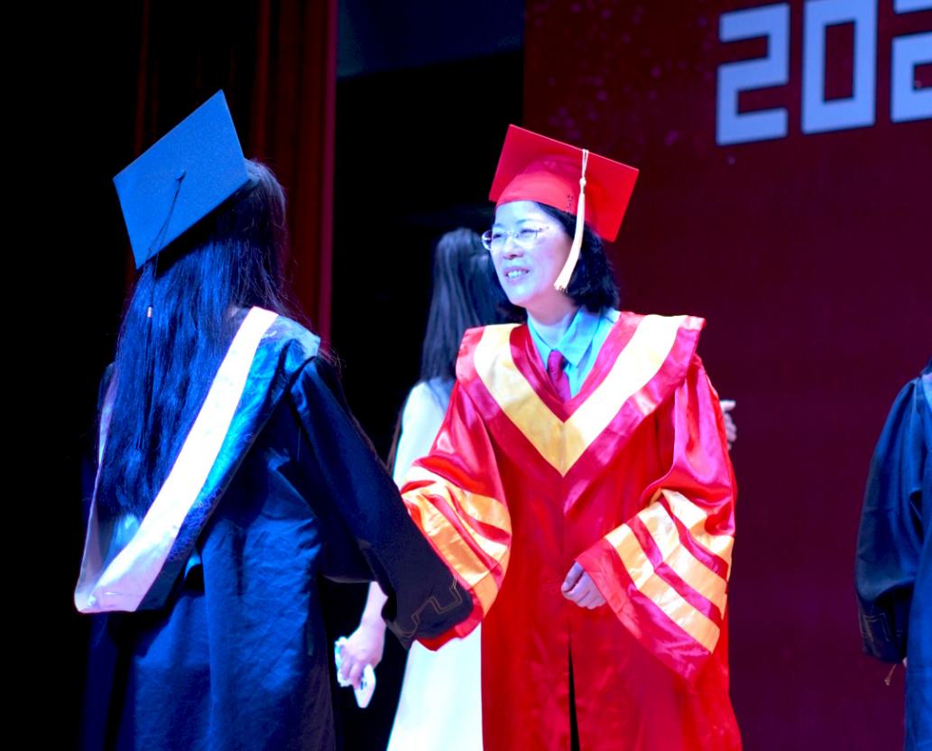 糖心视频 党委副书记、糖心视频 理事会理事长、学院院长邢纪红为优秀毕业生代表颁发荣誉证书