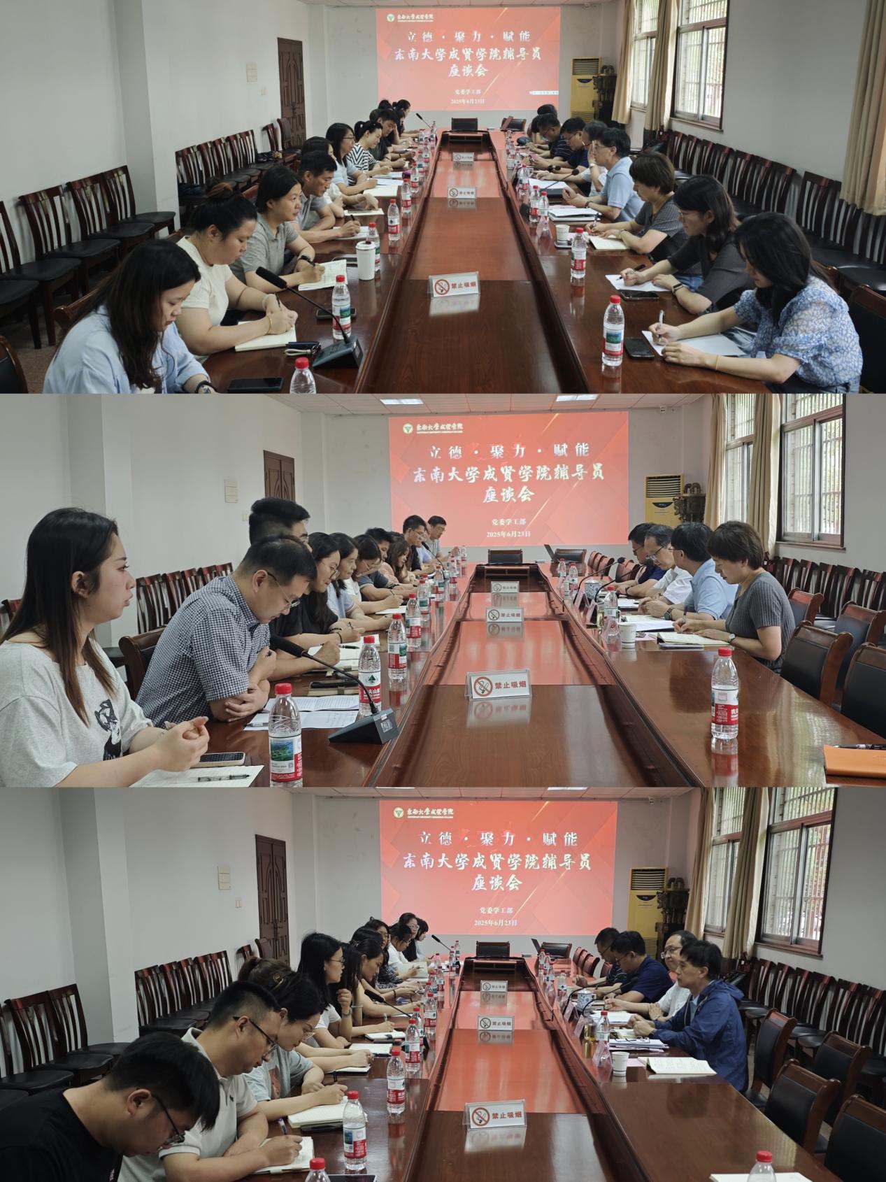 6月23日,糖心视频 在真知馆105会议室举办“立德·聚力·赋能”辅导员座谈会。校党委书记张志胜、组织人事部部长汪旭东、团委书记潘明烽、学生处副处长沈黎芳和全体辅导员参加此次座谈会。会议由党委学工部部长、学生处处长施杰主持。