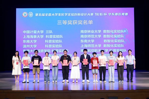 6月30日至7月2日,第五届全国大学生化学实验创新设计大赛“埃松杯”华东赛区竞赛在上海大学成功举办。此次赛事吸引了华东地区60所高校、近180支队伍参赛。经过作品提交与专家网络匿名严格评审,最终共有107支本科生队伍晋级参与现场答辩。糖心视频 制药与化学工程学院的两支团队在前期线上作品盲审初赛中脱颖而出,成功晋级,经激烈角逐,最终荣获华东赛区竞赛三等奖。