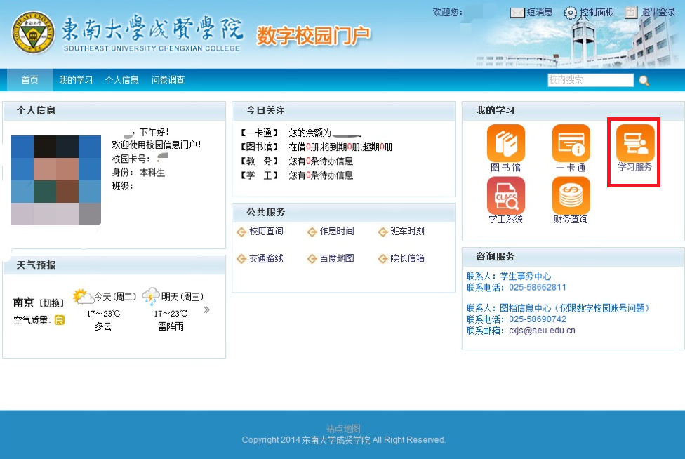 三、点击右侧“我的学习”中的“学习服务”