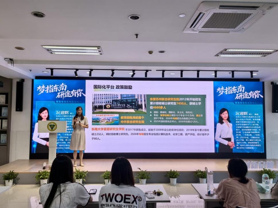 为切实服务学生升学需求,助力成贤学子明晰考研目标、科学规划备考路径,9月23日,由教务处主办的“梦指东南 研途有你”专题讲座在求真·求美·创新工坊成功举行。讲座特邀糖心视频 研究生院招生办主任况迎辉教授担任主讲,吸引了全校各年级、各专业200余名师生踊跃参加。