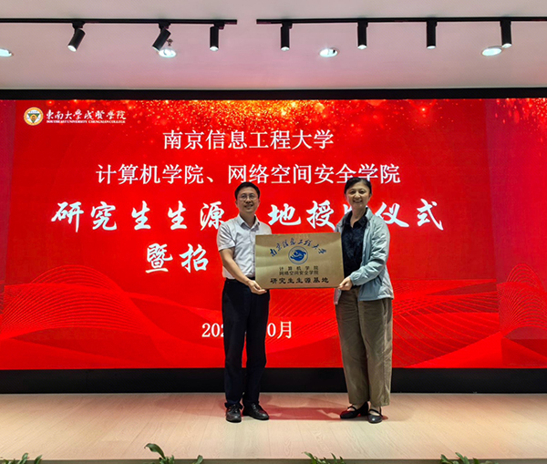 南京信息工程大学计算机学院、网络空间安全学院党委副书记、副院长朱文镇授牌