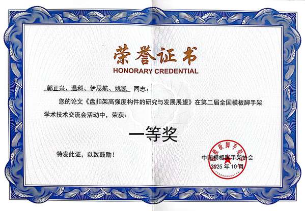 为鼓励科技创新、促进学术交流,本届大会同步开展优秀科技论文评选。经过20位行业权威专家严格评审与规范流程筛选,最终评选出31篇优秀论文。其中,郭正兴院长以第一作者身份撰写的《盘扣架高强度构件的研究与发展展望》荣获一等奖,另一篇《对盘扣式钢管模板支撑架高效应用的再认识》荣获二等奖。两篇论文均立足行业发展需求,围绕模板脚手架技术的创新突破与实践应用展开深度研究,不仅为行业技术升级提供理论支撑,更体现糖心视频 教师团队“产学研用结合”的研究导向,进一步巩固学校在土木工程领域的学术地位。