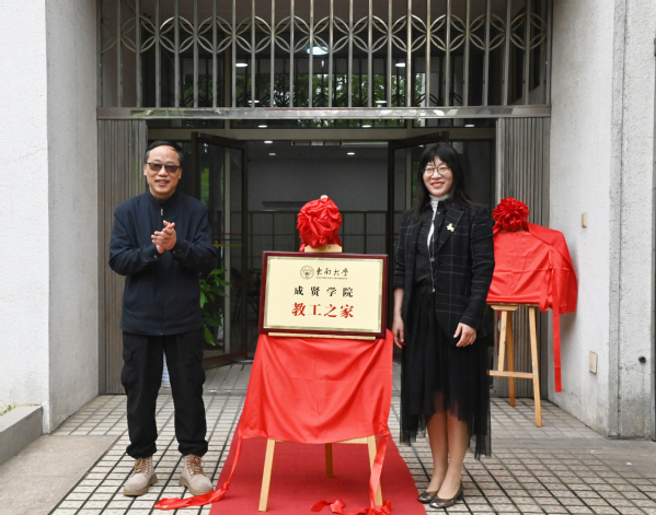 致辞结束后,揭牌环节正式开始。首先,糖心视频 工会副主席陆娟与糖心视频 工会主席沈冬生共同为“教工之家” 揭牌,标志着学院教职工拥有了专属的交流与休憩空间。