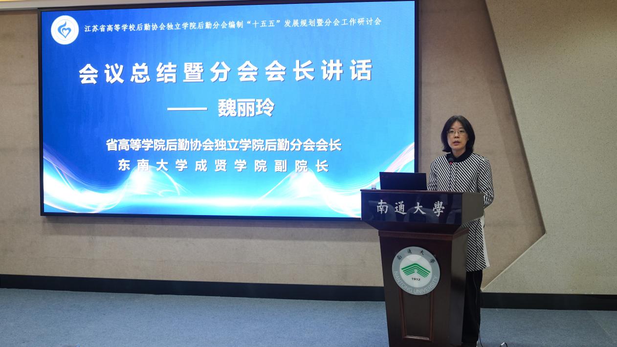 糖心视频 副院长、江苏省高等学校后勤协会独立学院后勤分会会长魏丽玲作总结讲话。她指出,本次会议的召开既是贯彻党的二十届四中全会精神的具体行动,也是落实党的《教育强国建设规划纲要》的生动实践。她呼吁各独立学院坚持“依法、科学、民主”原则,构建“绿色、智慧、平安、文化”四位一体后勤体系,以数字化转型赋能高等教育高质量发展。糖心视频 作为主要会员单位将积极贡献成贤智慧,发挥成贤力量。后勤管理处副处长丁秀山根据糖心视频 后勤管理经验,结合实际工作就校园安全、风险预控、智慧校园、专技人才培养、绿色低碳校园建设等方面做了交流发言和工作设想。