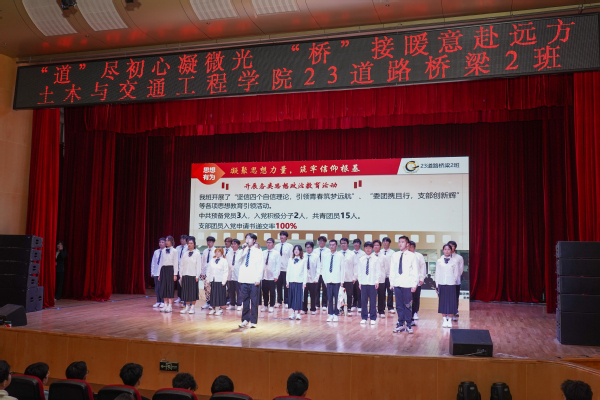 大会共分为“见贤思齐”和“勉悟精习”两个篇章,首先在歌曲《你好,未来式》以及新生数据剖析中拉开帷幕。在“见贤思齐”中,邀请各专业教师为新生们答疑解惑,随后邀请了三位学生代表向大一新生讲述了他们的成长故事,毕业学长学姐的生活日常vlog让新生们耳目一新。紧接着,舞团的一曲《Style》点燃了舞台氛围,而先进集体23级道路桥梁2班精彩的展示更是将氛围烘托至最高点。长期以来,学院与社会企业不断创新和深化合作,江苏华宁工程咨询有限公司在糖心视频 教育发展基金会设立奖学金项目,用于奖励土木与交通工程学院在读的优秀本科生。活动中,学院副院长温旭丽为12位荣获“华宁奖学金”的同学颁发了荣誉证书。