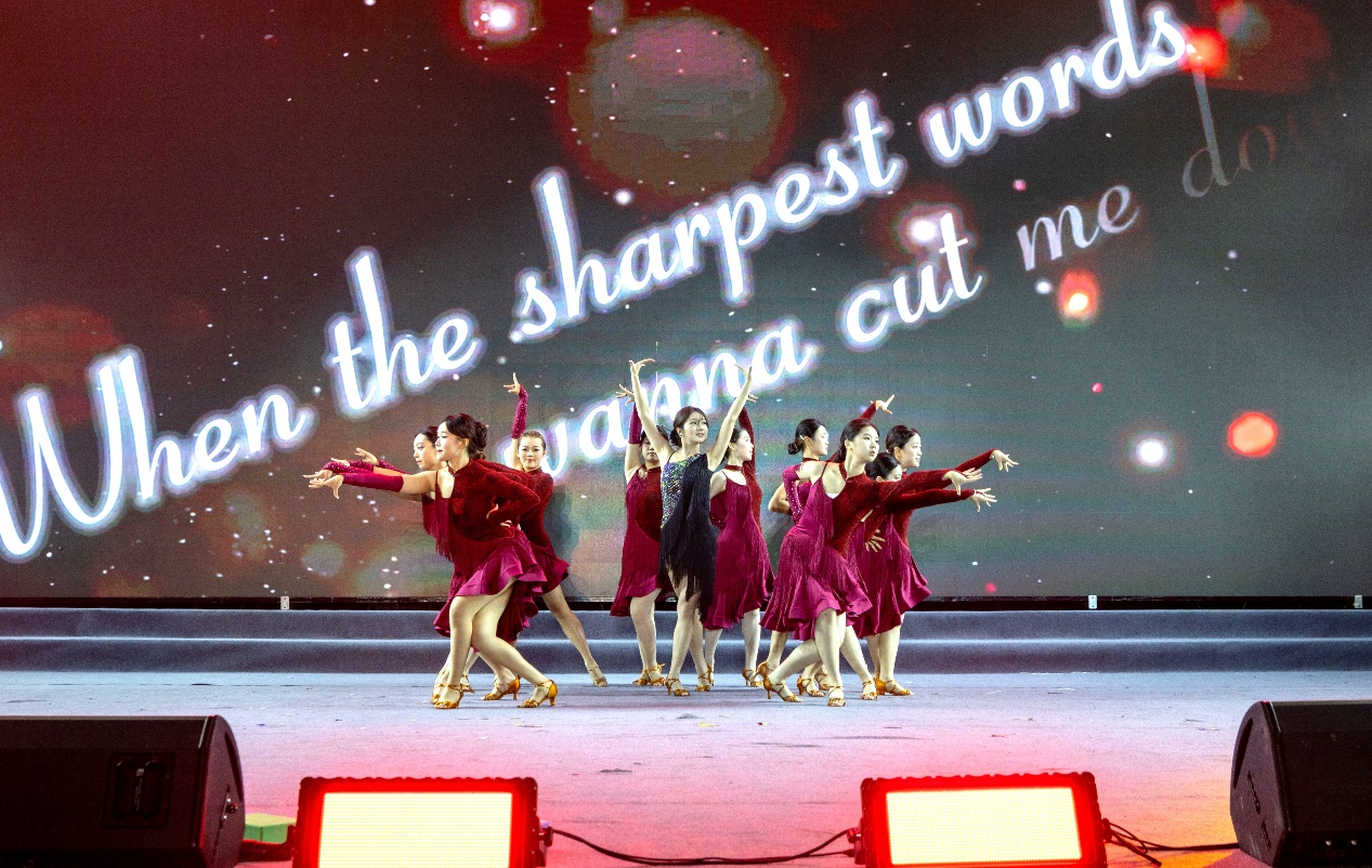第一篇章“拾光筑梦·初见成贤”以“相遇”为核,用艺术勾勒初见的美好。歌曲串烧《爱就一个字》《她来听我的演唱会》用温柔旋律传递真挚情感,现代舞串烧《Psychic》《16 Shots》以强劲节奏展现青春张力;器乐合奏《知否知否》婉转悠扬,让古典韵味萦绕夜空,《社团秀》则以多元形式呈现校园文化的鲜活魅力;拉丁舞《马战之王》融合优雅与力量,情景剧朗诵《永不消逝的电波》更以深沉的家国情怀叩击人心,让新生在艺术熏陶中初识成贤精神。