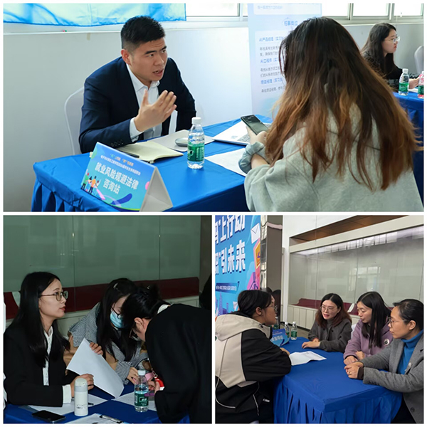 本次招聘会入口设有“咨询服务台”“就业指导站”“就业风险规避法律咨询站”三大特色驿站,构建“一站式”就业服务平台。学院专任教师现场指导,通过“个性化诊断+即时优化+实战指导”的方式,为毕业生提供一对一的简历优化与职业规划服务,助力学子精准对接岗位需求,提升就业竞争力。就业风险规避法律咨询站邀请专业律师全程驻场服务,为毕业生详细解读劳动合同签署要点,普及劳动法律知识,助力学子规避就业风险,维护合法权益。