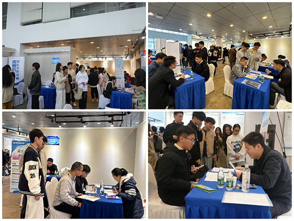 招聘会现场科学规划四大特色专区,构建体系化的就业服务空间。“校友聚力”专区汇聚11家校友企业,充分彰显了校友企业对母校发展的鼎力支持。“产教融合”专区汇集了学院“3+1”校企合作单位,建立“实习-毕业-就业”贯通培养机制与持续联络机制,利用数字化平台延伸服务链条,凸显了学院产教融合育人模式的实践成效。“文化融合”专区精准对接区域性招聘专场,邀请浦口区桥林街道、星甸街道,六合区雄州街道等产业园区组团参会,将地域引才与产业需求紧密结合。“创新成果”展区系统呈现了学生创新创业训练项目的设计思路与实践成果,体现了学生创新实践能力和求职就业的职业素养。