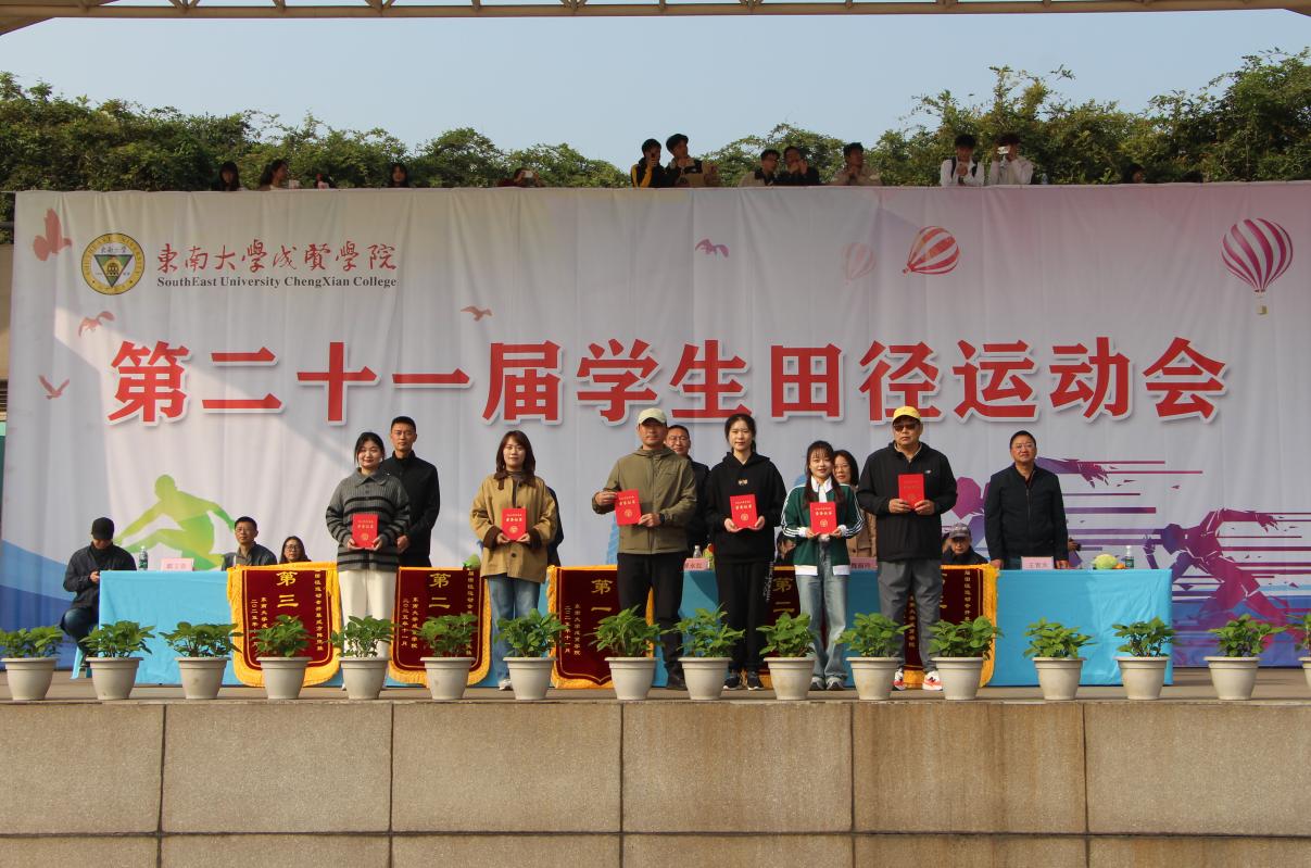 副院长魏丽玲依次宣读荣获2024—2025学年十佳学生运动员和体育先进工作者的表彰决定,二十届校运会开幕式表演获奖优胜单位。与会领导分别为获奖单位和个人颁奖。