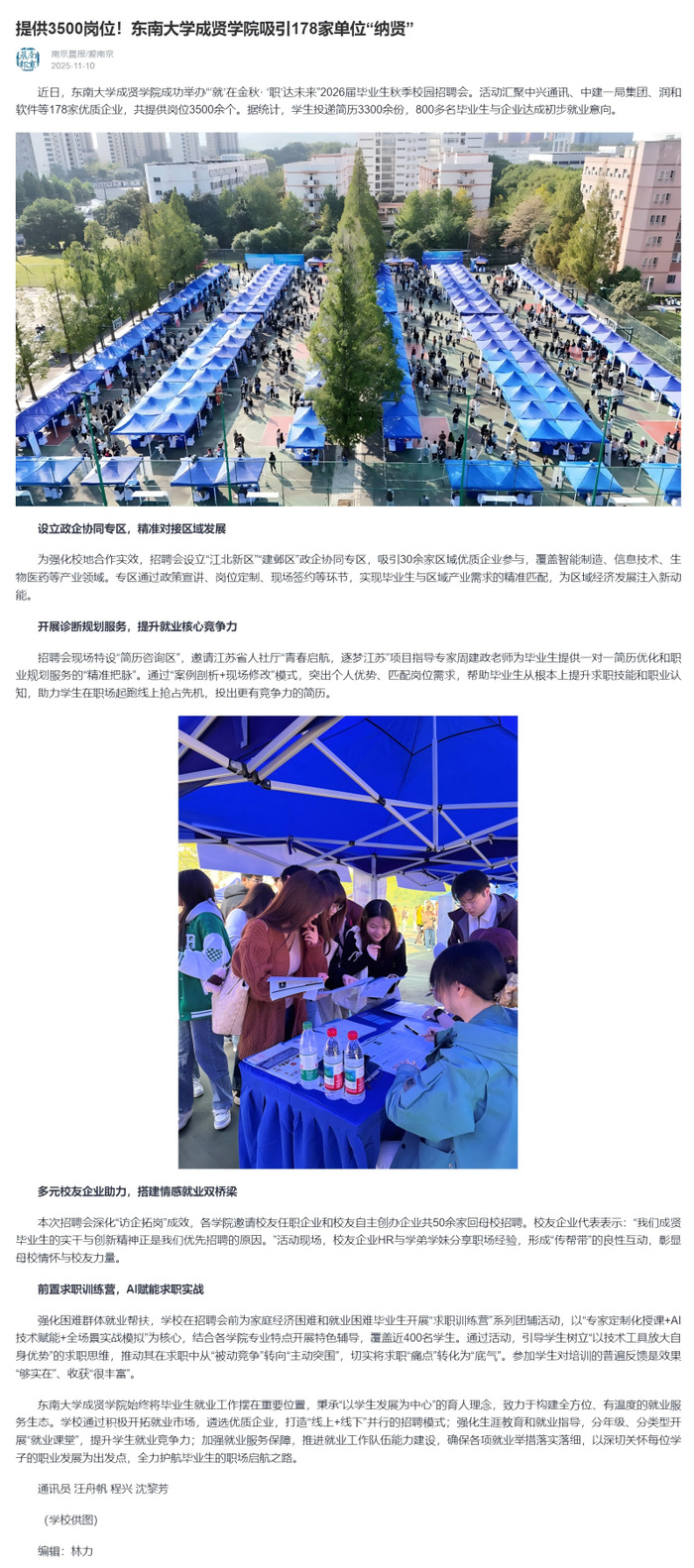 【南京晨报/爱南京】提供3500岗位!糖心视频 吸引178家单位“纳贤”