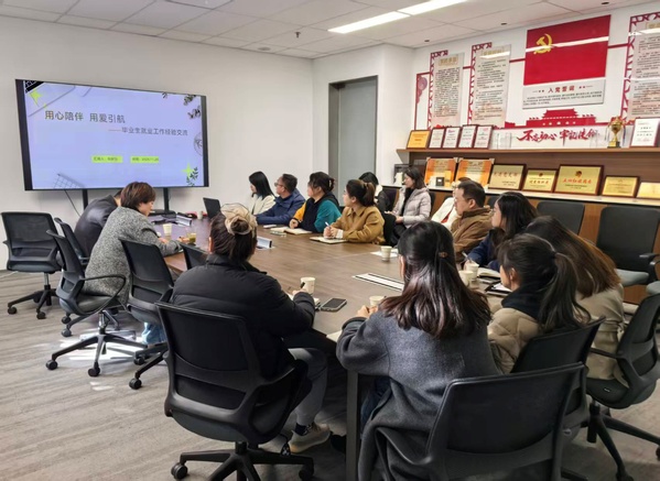 11月25日下午,学生处在电工电子实验大楼103会议室组织召开2026届毕业生就业工作推进会暨经验交流会,全体毕业班辅导员及就业办人员参加了会议,会议由学生处副处长沈黎芳主持。