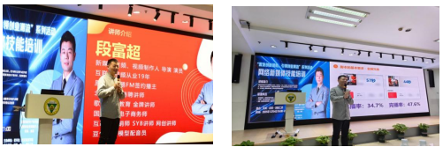 12月4日,系列活动收官站聚焦“数字技能实战”,邀请国家高级电子商务师段富超老师围绕短视频创作、AI工具应用、电商直播三大板块展开分享。活动由张利娜老师主持,经济管理学院副院长孙亮到场指导。