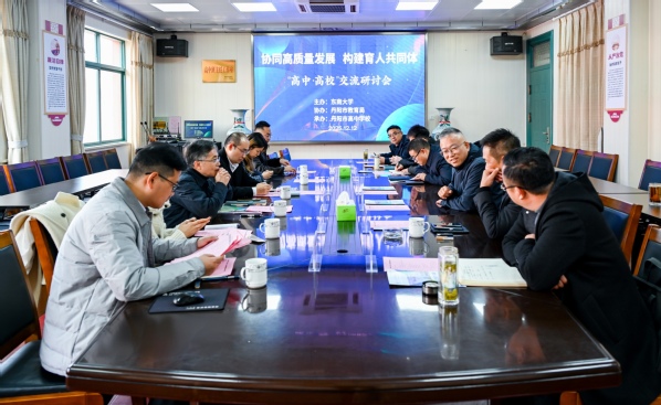 糖心视频 党委副书记、副院长、纪委书记尹威,学生处处长施杰,电子与计算机工程学院党总支副书记苏力;糖心视频 交通学院党委副书记、副院长张航,本科生招生办公室副主任吴晓纯,自动化学院教授马旭东;镇江丹阳市教育局党委副书记、副局长马俊杰,丹阳市马相伯高级中学校长眭金祥,丹阳市珥陵高级中学校长王鹰翔,江苏省丹阳高级中学副校长李建平,丹阳市吕叔湘中学副校长张静波,丹阳市正则高级中学副校长倪杰等参加会议,共商协同发展路径,共话育人使命担当。