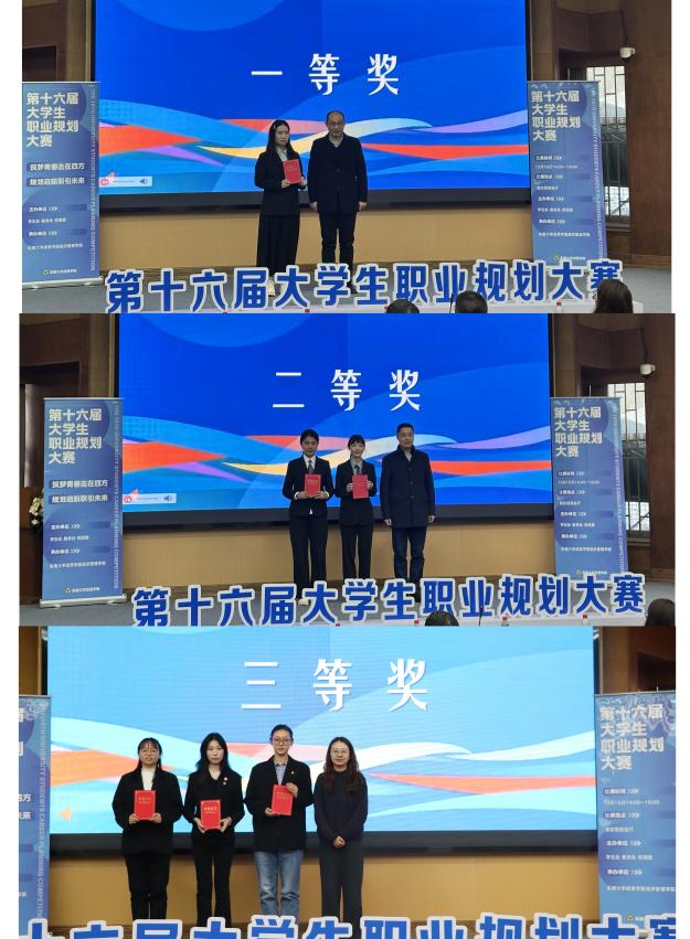 经过激烈角逐与综合评审,成长赛道中,岳明君荣获一等奖,韩恩萍、刘子正获得二等奖,李翔雪、马沁雯、惠祯瑜分获三等奖;就业赛道方面,崔琪宁摘得一等奖,姜佳吟、潘欣彤荣获二等奖,沈心怡、邵帅获得三等奖。