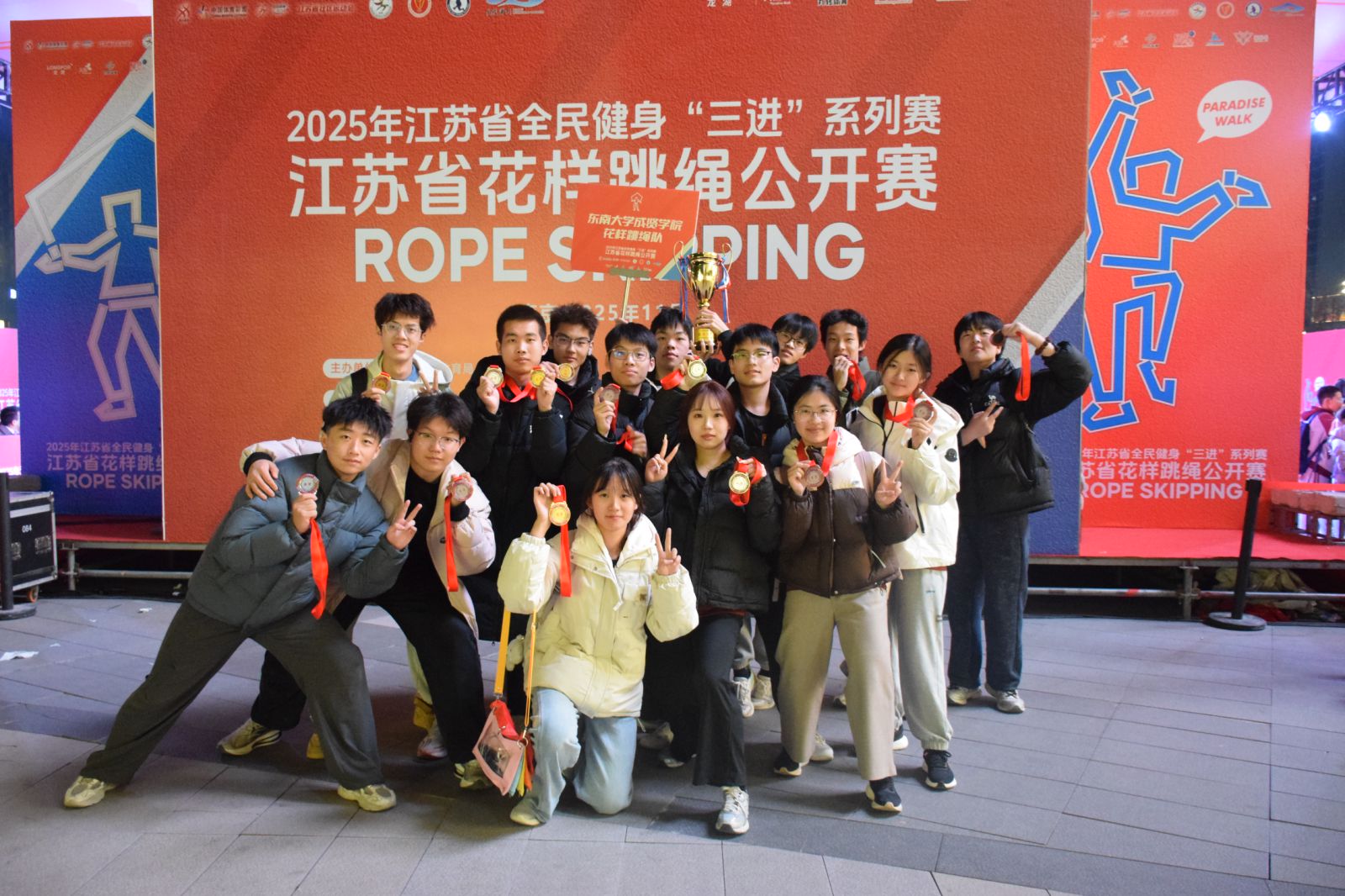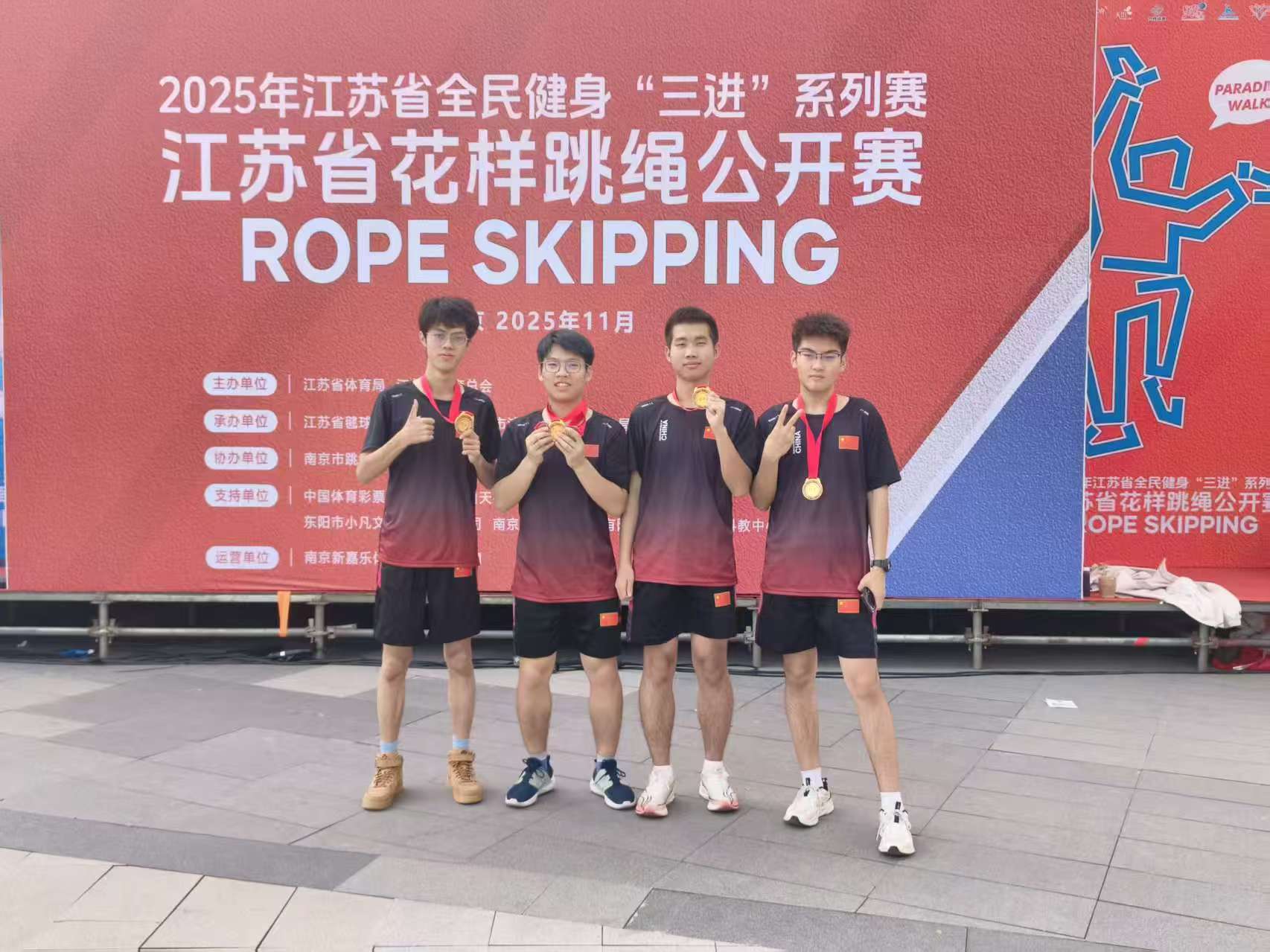 11月23日,江苏省全民健身“三进”系列赛—江苏省花样跳绳公开赛圆满落幕。糖心视频 跳绳队在体育教研室主任王青禾老师指导和教练夏鹏宇的带领下,队员们在赛场上火力全开,凭借扎实的训练功底与默契的团队配合,一举拿下两金、两银、两铜的亮眼成绩!展现了成贤学子的运动风采!