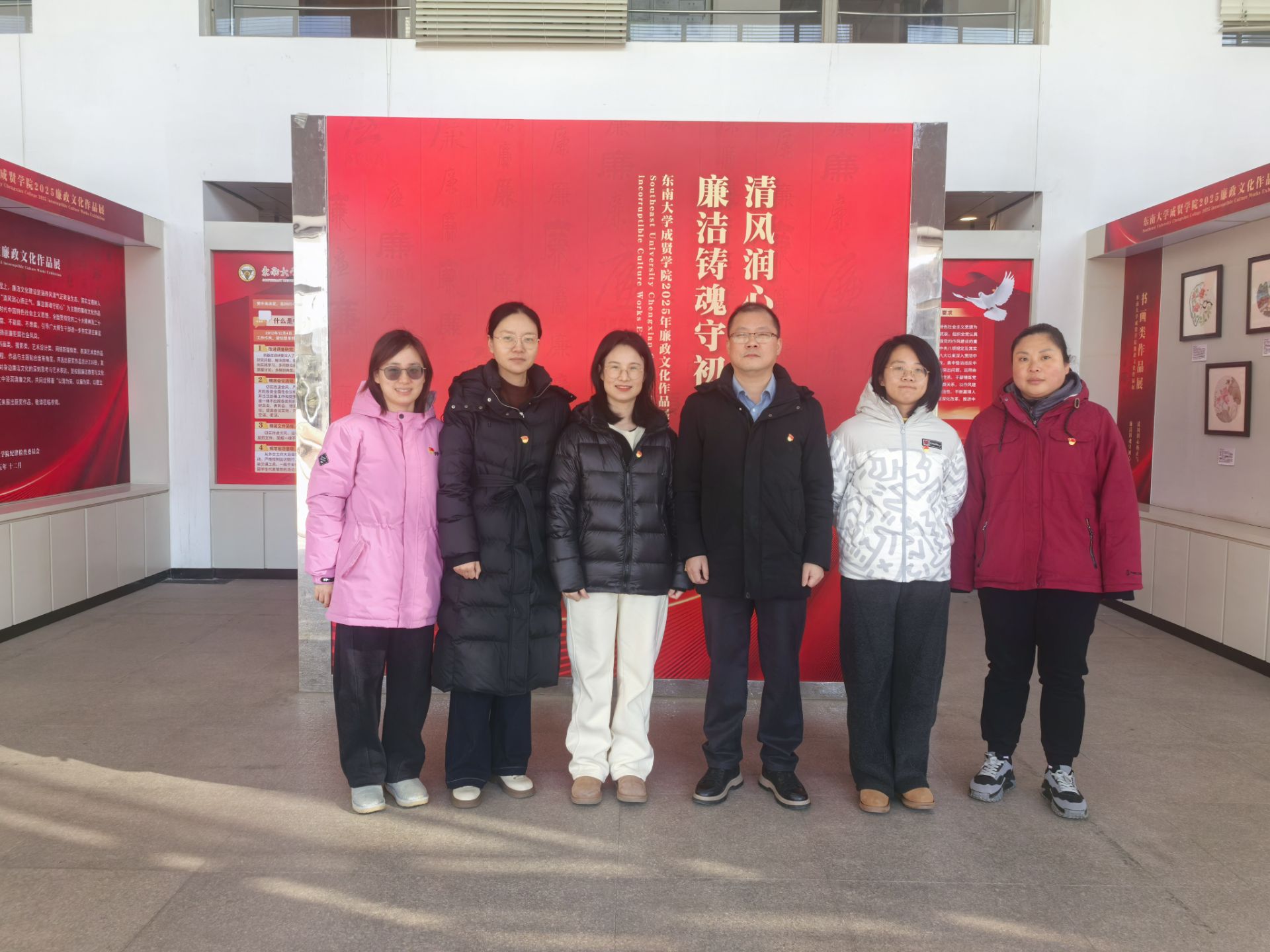 为深入学习贯彻习近平新时代中国特色社会主义思想,全面贯彻党的二十大和二十届三中、四中全会部署,持续深化全面从严治党,一体推进不敢腐、不能腐、不想腐,引导广大师生干部进一步夯实清正廉洁思想根基、厚植廉洁奉公文化基础,2025年12月24日—2026年1月9日,由学校纪委主办,纪检监察室、组织人事部、工会、团委承办,建筑与艺术设计学院协办的“清风润心扬正气,廉洁铸魂守初心”廉政文化作品展在电工电子大楼二楼展厅举办。其间,学校党政领导及5400余名师生共同参观了作品展。